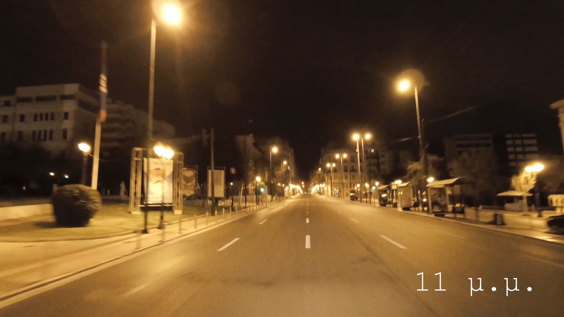 Η ταινία “11 μ.μ.” γυρίστηκε την Παρασκευή 19 Μαρτίου και την Κυριακή 21 Μαρτίου 2021, λίγο μετά την απαγόρευση κυκλοφορίας στους δρόμους της πόλης και είναι μια καταγραφή των ημερών που ζήσαμε και ζούμε.