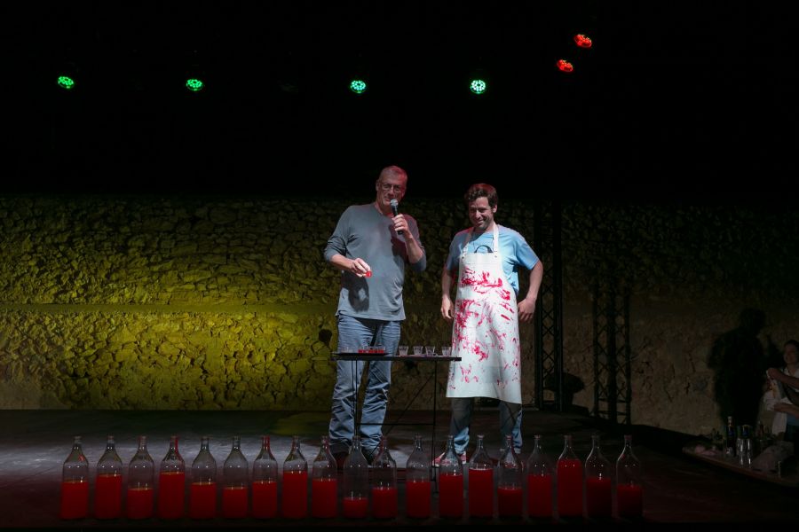 οι ομάδες scratch ανέβηκαν στη σκηνή όπου ο Καλλιτεχνικός Δ/ντής του Bob Theatre Festival Γιάννης Σαρακατσάνης –φορώντας αιματοβαμμένη ποδιά χασάπη- κέρασε «φρέσκο αίμα» (σφηνάκι) δίνοντάς τους ένα λεπτό να συστηθούν!Στην ίδια σκηνή ανέβηκε και ο Καλλιτεχνικός Δ/ντής του Φεστιβάλ Αθηνών και Επιδαύρου, Βαγγέλης Θεοδωρόπουλος καλωσορίζοντας το Bob Theatre Festival. Μετά τις συστάσεις και τις ευχές, το βράδυ τελείωσε όπως έπρεπε: με χορό και κέφι μέχρι το πρωί με τις μουσικές του pepper 96,6 και τον Δημήτρη Λεμονίδη στα decks.