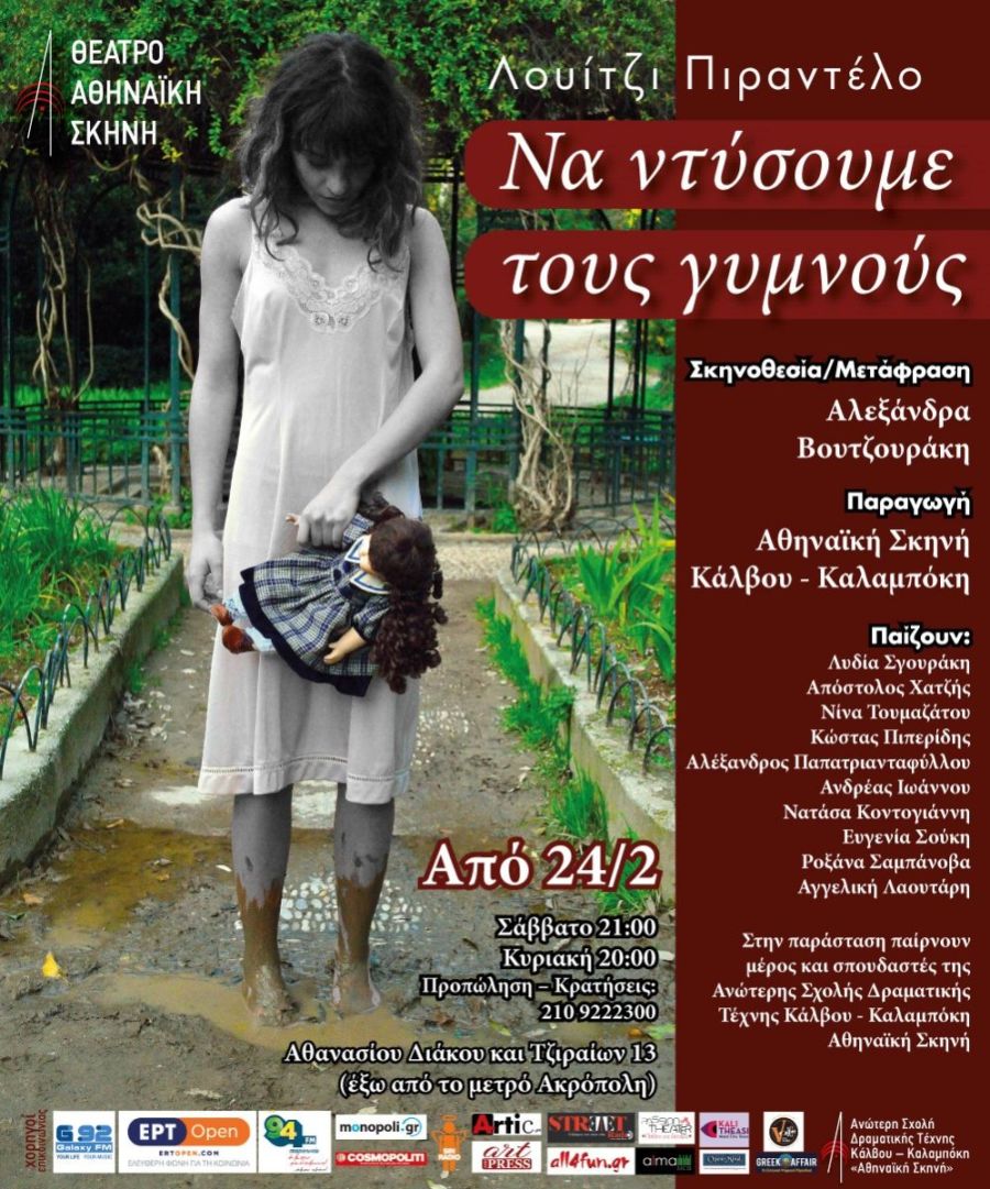 Η δεύτερη παραγωγή της Αθηναϊκής Σκηνής, ήταν το έργο του Λουίτζι Πιραντέλο “Να ντύσουμε τους γυμνούς” σε σκηνοθεσία Αλεξάνδρας Βουτζουράκη.