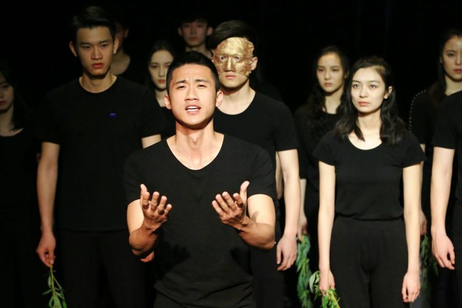 Οι Κινέζοι σπουδαστές-ηθοποιοί της σχολής ερμήνευσαν εντυπωσιακά βασικούς ρόλους του θηβαϊκού κύκλου και τραγούδησαν με εξαιρετική ακρίβεια στα αρχαία ελληνικά χορικά της Αντιγόνης του Σοφοκλή μελοποιημένα το 1896 από τον Ιωάννη Σακελλαρίδη, που πρώτος εισήγαγε την ελληνική μουσική στην μουσική της τραγωδίας.