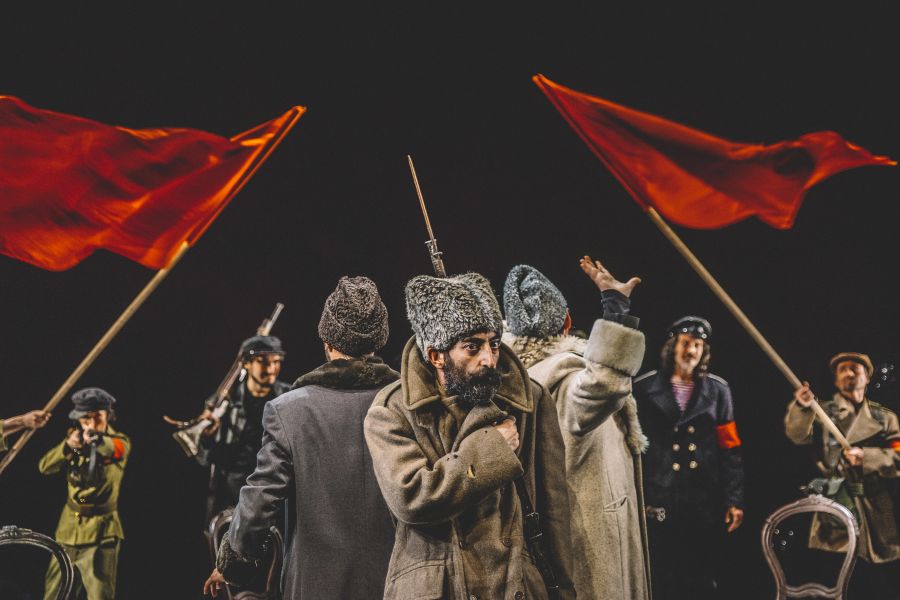 Η «Ρώσικη Επανάσταση» σε δραματουργία και σκηνοθεσία του Τσέζαρις Γκραουζίνις εντυπωσίασε το κοινό που παρακολούθησε, την πρεμιέρα της παράστασης, την Τετάρτη 25 Οκτωβρίου, ανήμερα της επετείου συμπλήρωσης των 100 χρόνων από την έναρξη της Οκτωβριανής Επανάστασης.