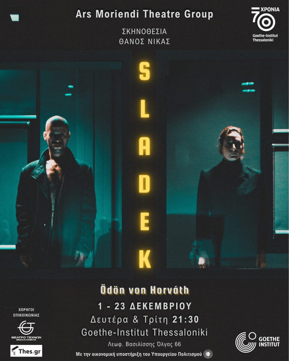Η παράσταση Σλάντεκ πραγματοποιείται υπό την αιγίδα και με την οικονομική υποστήριξη του Υπουργείου Πολιτισμού και του Goethe-Institut Thessaloniki.