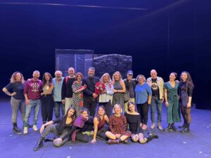 Ο Αστέριος Πελτέκης (Καλλιτεχνικός Διευθυντής ΚΘΒΕ, απόδοση κειμένου & σκηνοθεσία), με τους ηθοποιούς & συντελεστές της παράστασης.