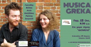 Η Μαρίνα Πετσάλη (φωνή) και ο Yannick Jacquet (κιθάρα/πιάνο) συναντήθηκαν στο σταυροδρόμι που είναι οι σημερινές Βρυξέλλες. Κι από εκεί έρχονται στο Ιδιόμελο, την Παρασκευή 13 Οκτωβρίου 2017, με τις αποσκευές τους γεμάτες αγαπημένα ελληνικά ...