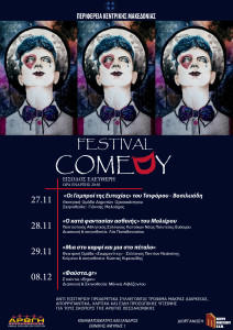 Η Περιφέρεια Κεντρικής Μακεδονίας και το Κέντρο Πολιτισμού Π.Κ.Μ. βρίσκονται στην ευχάριστη θέση να σας παρουσιάσουν το Comedy Festival στο Κινηματοθέατρο «Αλέξανδρος» (Εθνικής Αμύνης 1) 27.11, 28.11, 29.11, 08.12.2015 ώρα 20:30 Πρόκειται για ...