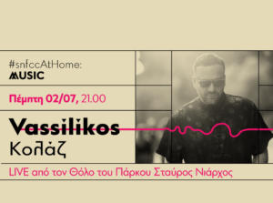 Η σειρά #snfccAtHome: music συνεχίζεται την Πέμπτη 2 Ιουλίου με τον Vassilikos, ο οποίος θα βρεθεί στη σκηνή του Θόλου, στον Λαβύρινθο του Πάρκου Σταύρος Νιάρχος, για πρώτη φορά με την παρουσία περιορισμένου κοινού μέσα στο φετινό καλοκαίρι.
