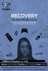 Μέσα στα πλαίσια του θεάτρου της Επικοινωνίας η Facta Non Verba παρουσιάζει το Recovery, ένα σύγχρονο αμερικάνικο έργο με θέμα τις εξαρτήσεις.