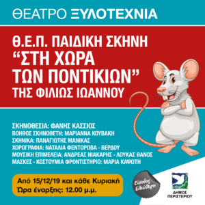 Το Θεατρικό Εργαστήρι - Παιδική Σκηνή του Δήμου Περιστερίου προσκαλεί τους μικρούς μας φίλους, αλλά και τους μεγάλους «Στη Χώρα Των Ποντικιών»