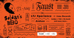 Την Παρασκευή 22 Νοεμβρίου 2019 ο Soldat παρουσιάζει το πρώτο Soldat’s BBQ στο Faust –Bar – Theatre – Arts (Καλαμιώτου 11 & Αθηναΐδος 12), με καλεσμένους τον Ιταλό θρύλο της electronica ευρωπαϊκής σκηνής LTJ Xperience (IRMA Records), τον soul ...