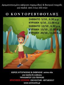 Βιωματικά εργαστήρια για παιδιά από 2-4 ετών, τα παιδιά μέσα από διασκεδαστικές δραστηριότητες, θεατρικό παιχνίδι και κατασκευές, έρχονται σε επαφή με τον μαγικό κόσμο των παραμυθιών. Μέσα από γνωστά και αγαπημένα παιδικά βιβλία, έρχονται σε ...
