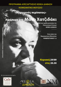 Tην Κυριακή, 29 Σεπτεμβρίου 2019 και ώρα 20:30, στο πλαίσιο του εορτασμού των Ευρωπαϊκών Ημερών Πολιτιστικής Κληρονομιάς, το ΚΕΘΕΑ ΔΙΑΒΑΣΗ παρουσιάζει στον Κήπο του Νομισματικού Μουσείο τον «Νυχτερινό περίπατο», μία συναυλία - αφιέρωμα σε ...