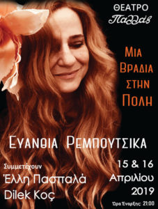 Από τους πολυσύχναστους δρόμους της Κωνσταντινούπολης στα ονειρικά σοκάκια του Παρισιού και από κει σε μια φεγγαρόλουστη βραδιά στην έρημο προσκαλεί το κοινό η Ευανθία Ρεμπούτσικα με όχημα τις πολυαγαπημένες μελωδίες της και αφετηρία τη σκηνή ...
