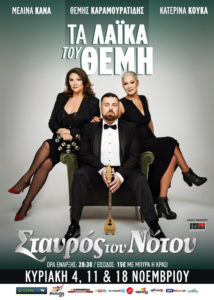Τις Κυριακές 4, 11 και 18 Νοεμβρίου τα «Λαϊκά του Θέμη» θα παρουσιαστούν στην κεντρική σκηνή του Σταυρού του Νότου και μαζί του θα έχει δύο από τις σημαντικότερες και πιο επιτυχημένες εκπροσώπους του λαϊκού και έντεχνου τραγουδιού τη Μελίνα ...