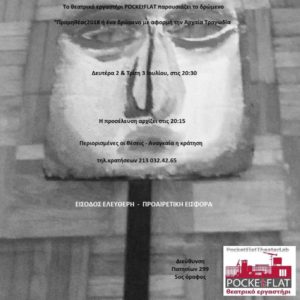 Θεατρικό Εργαστήρι POCKEtFLAT Εν είδει σκηνοθετικού σημειώματος Επειδή, όπως είχε πει και ο Κάρολος Κουν, δεν ξέρουμε πώς ανέβαινε τότε η Τραγωδία, άρα όποια προσέγγισή της, δεν μπορεί παρά να θεωρηθεί εναλλακτική, επειδή τα κείμενα της ...