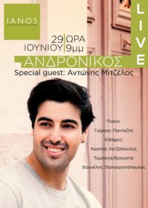 Την Παρασκευή 29 Ιουνίου στις 21:00 ο Ανδρόνικος με special guest τον Αντώνη Μιτζέλο θα μας υποδεχτούν σ’ ένα μοναδικό live στον ΙΑΝΟ (Σταδίου 24).