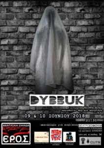 Η θεατρική ομάδα ΕΡ.Ο.Σ.[ΕΡασιτεχνική Ομάδα Σκηνής] παρουσιάζει το έργο του Σόλομων Άνσκυ/ Salomon Anski "ΝΤΙΜΠΟΥΚ" σε προσαρμογή και σκηνοθεσία της Μαριάνας Αλεξανδρή.