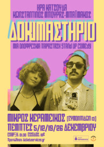 Η Ήρα Κατσούδα και ο Κωνσταντίνος Μπούρας - Μπαϊμάκος είναι φίλοι και συνεργάτες εδώ και χρόνια. Έχουν μοιραστεί μυστικά, ξενύχτια, πάρτι και δουλειές, αλλά πότε έως τώρα μια από κοινού παράσταση. Και επειδή αυτή η παράσταση ήταν στο bucket list ...