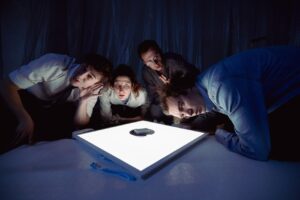 «Ο Σκεπαστής του Φεγγαριού», είναι μία παράσταση εμπνευσμένη από το βιβλίο του Eric Puybaret «Ο Φεγγαροσκεπαστής».