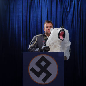 Ο Γιάννης Αποσκίτης παρουσιάζει στο Θέατρο του Νέου Κόσμου τη νέα του εξωφρενική μαύρη κωμωδία πάνω στην παρανοϊκή πολιτική επικαιρότητα.