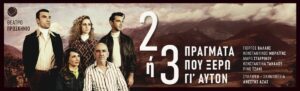 Το νέο έργο του Ανέστη Αζά, «Δύο ή τρία πράγματα που ξέρω γι’ αυτόν», ανεβαίνει στο θέατρο Προσκήνιο, από τις 24 Ιανουαρίου και καταπιάνεται με ένα θέμα όλο και πιο παρόν σήμερα: την λεγόμενη κρίση της ανδρικής ταυτότητας.