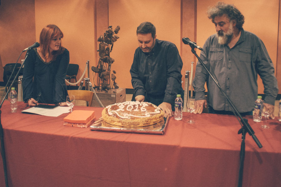 Ο Πρόεδρος του Δ.Σ. Άρης Στυλιανού και ο Καλλιτεχνικός Διευθυντής Γιάννης Αναστασάκης απεύθυναν στους εργαζόμενους και στους συνεργάτες του ΚΘΒΕ ευχές για το νέο έτος, έκοψαν την βασιλόπιτα και μοίρασαν κομμάτια στους υπεύθυνους Τμημάτων του Θεάτρου. Τα τελευταία δύο κομμάτια της βασιλόπιτας δόθηκαν στους γνωστούς κι αγαπημένους δίδυμους της Θεσσαλονίκης, τον Ανέστη και τον Μιχάλη, χαρακτηριστικές φυσιογνωμίες της πόλης που είναι πάντα παρόντες στις συνεντεύξεις και στις παραστάσεις του ΚΘΒΕ. Τα τρία «φλουριά» της βασιλόπιτας έτυχαν στην Eλένη Καλαϊτζή, σπουδάστρια στο Α’ Έτος της Δραματικής Σχολής του ΚΘΒΕ, στην Marleen Vershchuuren από το Τμήμα Παραγωγής και στον Κώστα Παπαζαχαρίου από το Διοικητικό Τμήμα.