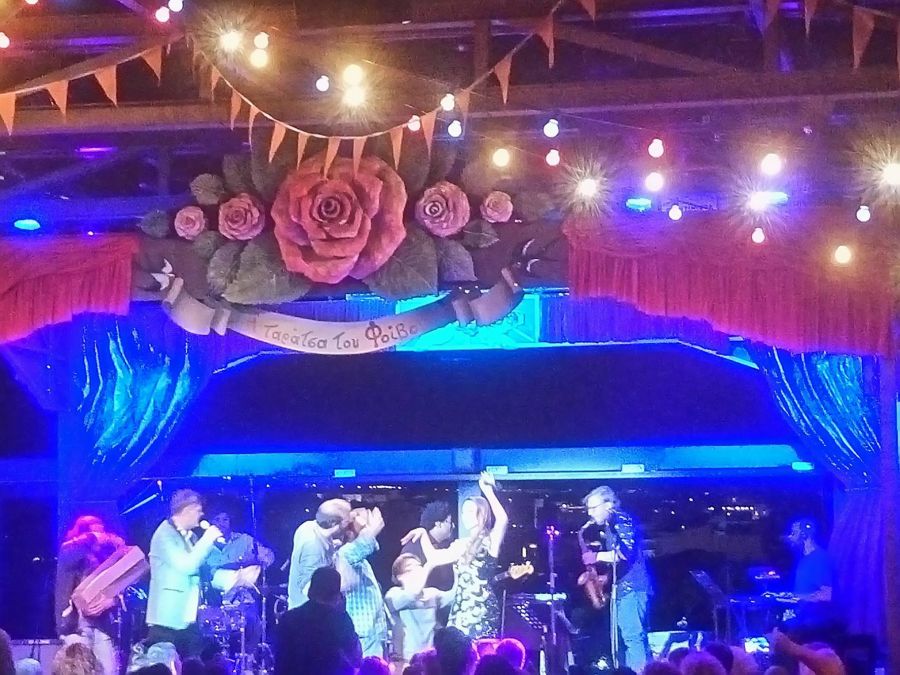 Το vintage σκηνικό με τα τραπεζάκια και τις καρέκλες και γενικά η χαλαρή ατμόσφαιρα και το βλέμμα απόλαυσης των θεατών, που γέμιζαν όλο το χώρο καθιστοί ή όρθιοι, σίγουρα είχε κάτι από την ατμόσφαιρα των παλιών αναψυκτηρίων.