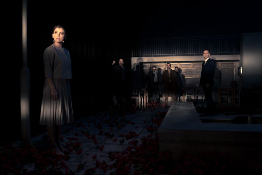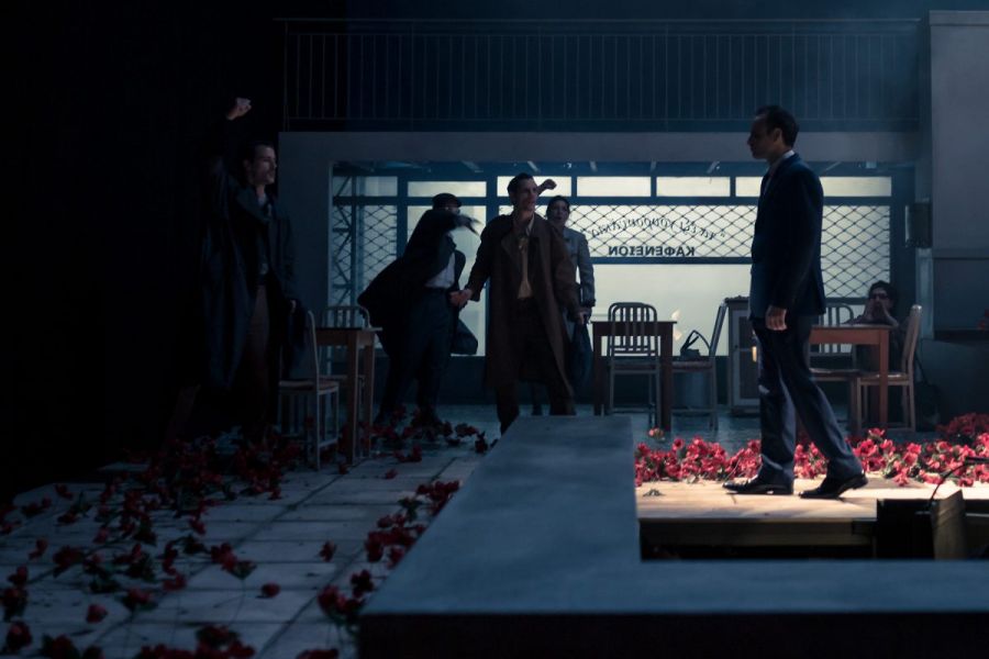 Εντυπωσιακό μέχρι την παραμικρή λεπτομέρεια, το σκηνικό της Εύας Μανιδάκη με τις εκατοντάδες παπαρούνες, το καφενείο, το αστυνομικό τμήμα και το πελώριο «Ζει» στον δεύτερο επίπεδο. Συνεπή προς το πνεύμα της εποχής και τα κοστούμια της Βασιλικής Σύρμα. Οι φωτισμοί του Σίμου Σαρκετζή συνέβαλαν αποφασιστικά στη σκοτεινή και σκληρή ατμόσφαιρα του έργου.