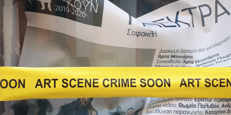 Δευτέρα πρωί, όσοι βρέθηκαν στο κέντρο της πόλης με κάποια από τις εξαιρέσεις της καραντίνας, αντίκρισαν μεγάλες κίτρινες ταινίες συσκευασίας γύρω από κτίρια, γκαλερί, σινεμά, με την ένδειξη "ARΤ SCENE CRIME SOON". Πρόκειται για μια αστική εικαστική δράση, στον δημόσιο χώρο που αυτή τη στιγμή στερείται της ανθρώπινης παρουσίας. Mία δράση με παραπομπή στον τρόπο με τον οποίο η τέχνη και προφανώς οι δημιουργοί υποφέρουν από την πανδημία και τον εγκλεισμό. Η δράση αφορά στην κάλυψη ή το ντύσιμο των εισόδων ή ολόκληρων κτιρίων (που κυρίως έχουν σχέση με τον πολιτισμό) στο κέντρο της Αθήνας από ταινίες συσκευασίας που σχεδιάστηκαν και τυπώθηκαν ειδικά για αυτό το έργο με λογότυπο "ARΤ SCENE CRIME SOON", μας λένε οι εμπνευστές του.