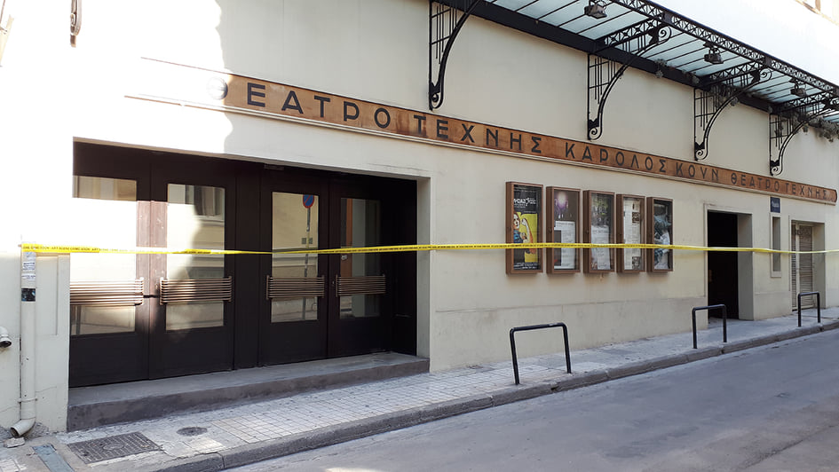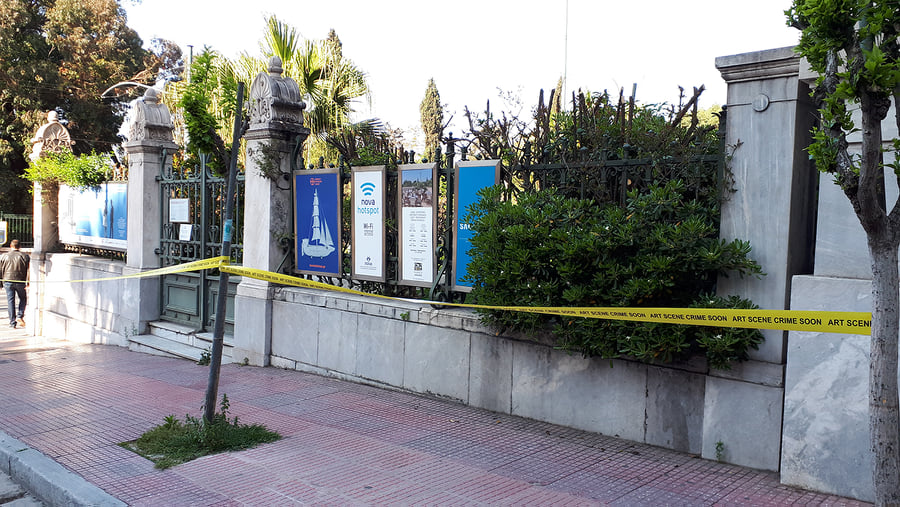 Βράδυ Κυριακής, ένα αθόρυβο συνεργείο, μέσα στους έρημους δρόμους της Αθήνας της καραντίνας, άπλωσε κίτρινες κορδέλες που παραπέμπουν σε τόπο εγκλήματος γύρω από χώρους τέχνης και άλλα κτίρια της Αθήνας. Τι ακριβώς συμβαίνει;