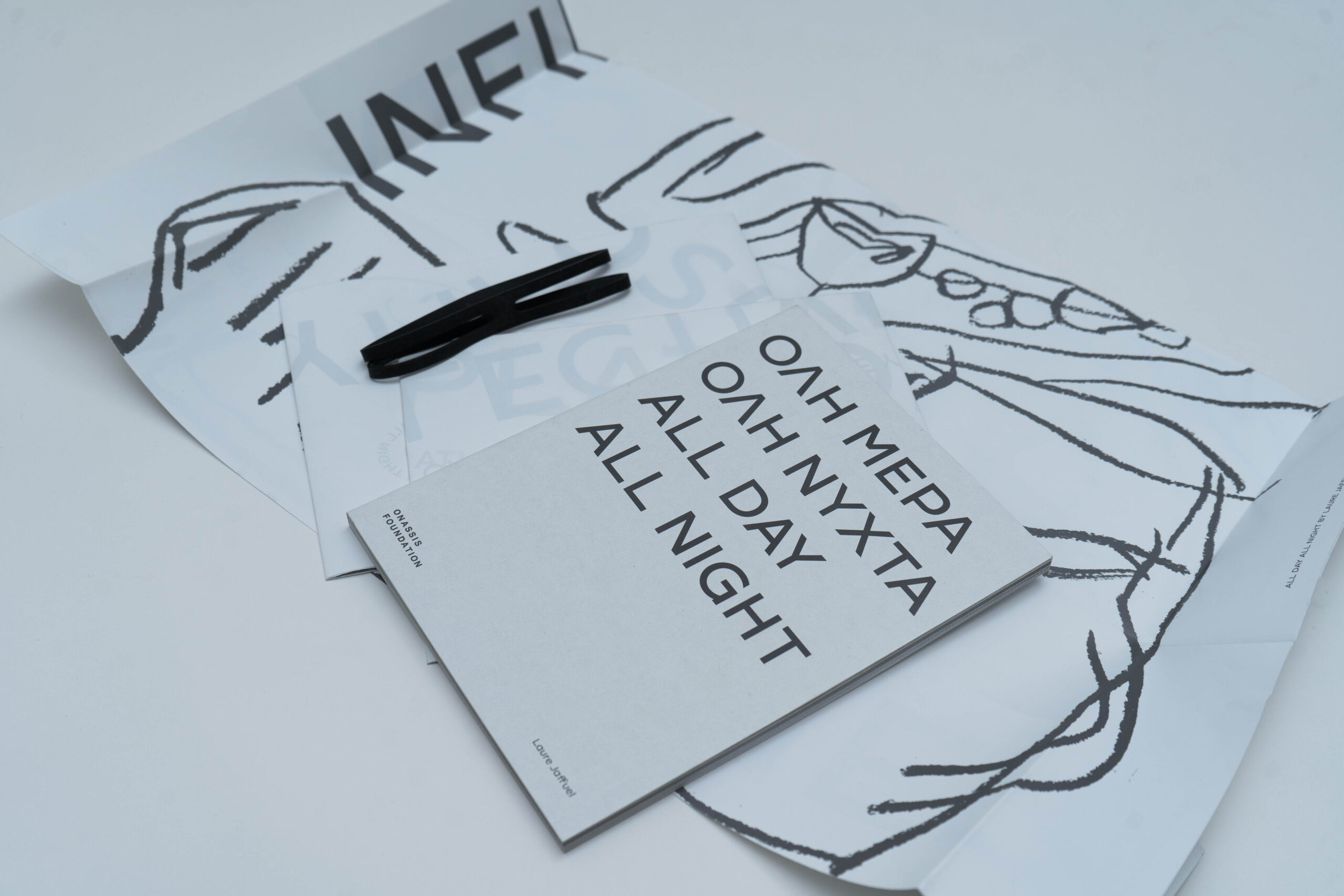 Το «ΟΛΗ ΜΕΡΑ ΟΛΗ ΝΥΧΤΑ» είναι μια έκδοση του Ιδρύματος Ωνάση σε συνεργασία με το DOLCE που δημιούργησε και επιμελήθηκε η Laure Jaffuel, στο πλαίσιο της έρευνας που ξεκίνησε κατά τη διάρκεια του προγράμματος Critical Practices του Onassis AiR, την άνοιξη του 2020. To βιβλίο διερευνά το ζήτημα του δημόσιου χώρου στην Αθήνα σε μια περίοδο που συνέπεσε με τους δύσκολους καιρούς της παγκόσμιας πανδημίας και την απαγόρευση της κυκλοφορίας, οπότε γίνεται ακόμα πιο επιτακτική η ανάγκη να τεθούν ερωτήματα όπως τι αποτελεί δημόσιο χώρο και πώς μπορούμε να ζούμε μαζί στην πόλη.