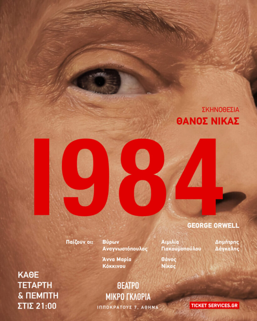 Το 1984 του George Orwell ανεβαίνει στο Μικρό Γκλόρια σε σκηνοθεσία Θάνου Νίκα για περιορισμένο αριθμό παραστάσεων, ως μια ζωντανή εμπειρία επιτήρησης, πειθαρχίας και εσωτερικής αντίστασης.