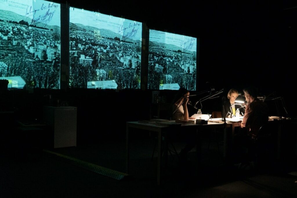 Ποιοι αντιστάθηκαν και ποιοι συντάχθηκαν; Πώς λειτούργησαν οι μηχανισμοί μνημοκτονίας; Ποιος ο ρόλος του θεάτρου; Η ομάδα, επί σκηνής, συνομιλεί με «καλεσμένους» από παρελθόν, παρόν και μέλλον της Θεσσαλονίκης και καταθέτει τα ευρήματά της για μια νέα ιστορική και κοινωνική τοιχογραφία της «πόλης των φαντασμάτων».