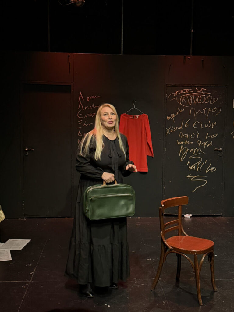 Την συνέντευξη της ηρωίδας, που ενσαρκώνει και σκηνοθετεί η συγγραφέας του βιβλίου, «διακόπτει» συχνά ο Νίκος Θεοδωράκης, που τραγουδά ζωντανά στην παράσταση.