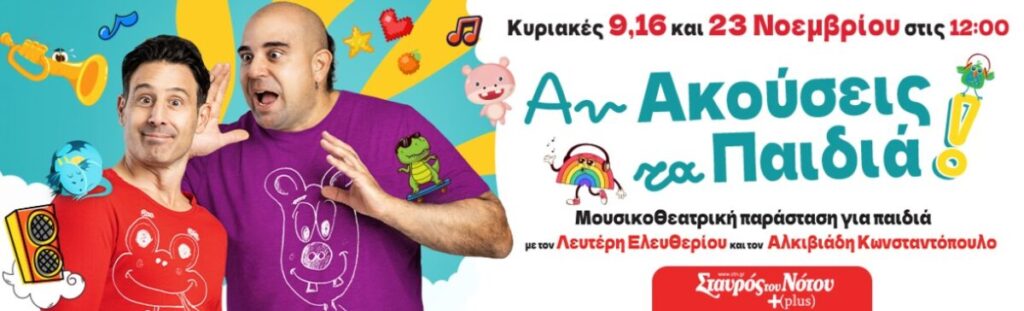 Μετά από μια σειρά sold out παραστάσεων, ο Λευτέρης Ελευθερίου και ο Αλκιβιάδης Κωνσταντόπουλος επιστρέφουν στην σκηνή του Σταυρού του Νότου Plus για λίγες ακόμη εμφανίσεις με την μουσική παράσταση «Αν ακούσεις τα Παιδιά»!