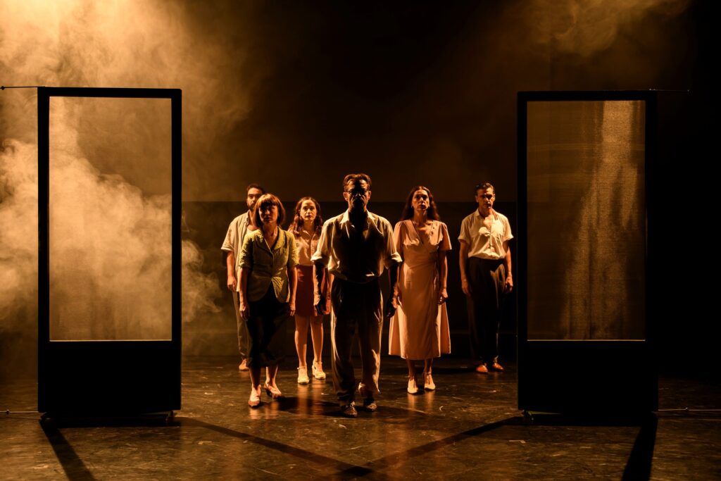 Ο Άρης Λάσκος («Ο αγνός εραστής», «Ένρον», «Τα μαγικά βουνά», «Το συνέδριο για τον Ιράν») μεταγράφει για το θέατρο το μυθιστόρημα και ο Βαλάντης Φράγκος («Peer Gynt no man’s land», «Πόση γη χρειάζεται ο άνθρωπος» «L’echange/Η Ανταλλαγή», «Μετά την πρόβα») σκηνοθετεί μια καταιγιστικού ρυθμού παράσταση. Δύο ηθοποιοί αναλαμβάνουν τους δύο κεντρικούς χαρακτήρες (Ανδρέας – Φλώρα) και άλλοι τέσσερις εναλλάσσονται σε πολλαπλούς ρόλους ενσαρκώνοντας τους υπόλοιπους χαρακτήρες του μυθιστορήματος.