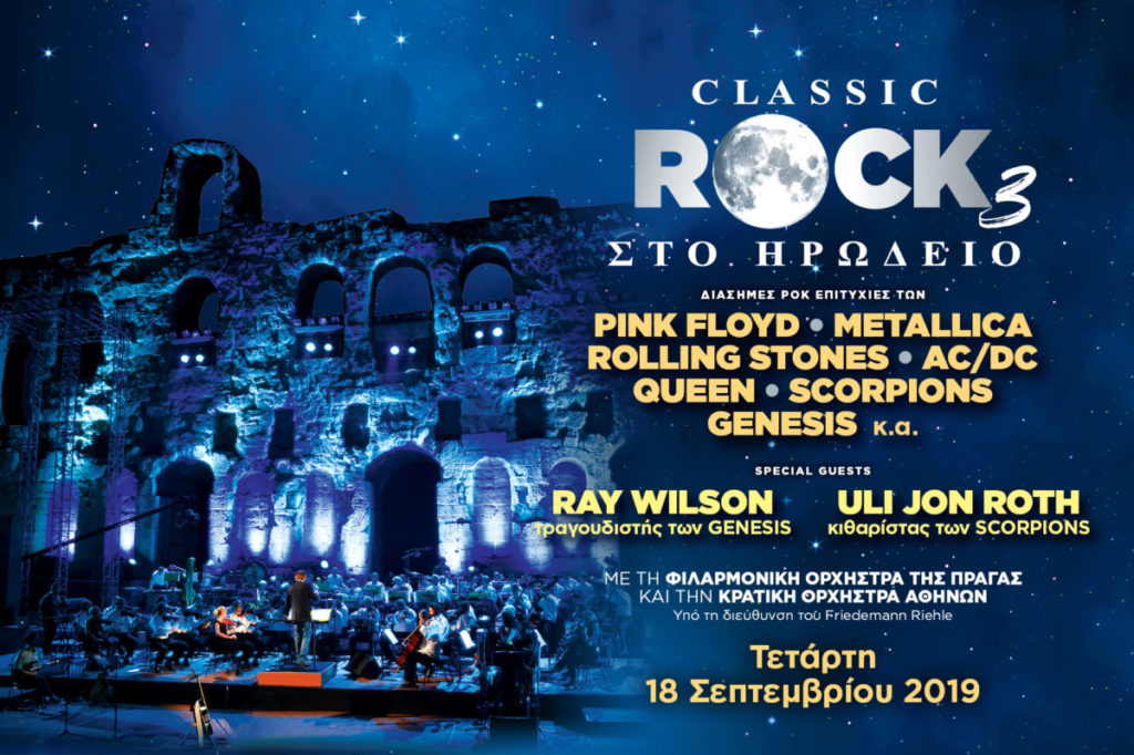 Μια από τις μεγαλύτερες ορχήστρες της Ευρώπης, η Φιλαρμονική Ορχήστρα της Πράγας, παρουσιάζει τη συναυλία με την οποία η ροκ μουσική μπόρεσε να εισχωρήσει και να ακουστεί σε όλες τις μεγάλες όπερες της Ευρώπης.. Classic Rock! Διάσημα τραγούδια των μεγαλύτερων ροκ συγκροτημάτων όπως PINK FLOYD, ROLLING STONES, AC/DC, METALLICA, SCORPIONS, GENESIS, QUEEN κ.α. παρουσιάζονται με συμφωνικό ήχο, μαζί με ηλεκτρικά όργανα! Και φέτος στο Ηρώδειο, το πρόγραμμα θα παρουσιαστεί με την σύμπραξη της Κρατικής Ορχήστρας Αθηνών υπό τη μουσική διεύθυνση του μαέστρου, συνθέτη και ενορχηστρωτή Friedemann Riehle.