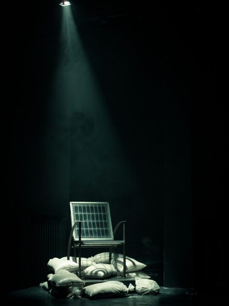 Έτσι, αυτή τη φορά έχουμε τέσσερις χαρακτήρες (μια Θεατρίνα, έναν Πολέμαρχο, μια Ανταποκρίτρια κι έναν Λιποτάκτη) που εν καιρώ πολέμου έχουν βρει καταφύγιο σ’ έναν υπόγειο μισοκατεστραμμένο χώρο (που είναι ταυτόχρονα εγκαταλελειμμένο θέατρο, παρεκκλήσι και μπούνκερ. Εκεί περνούν τις ατελείωτες ώρες της πολιορκίας, αναπαριστώντας τον Ερρίκο Ε’ του Σαίξπηρ – ή, τέλος πάντων, μια οποιαδήποτε πολεμική ιστορία (γιατί θεωρώ ότι ο Ερρίκος Ε’ αφηγείται κάθε πόλεμο, με τον ίδιο τρόπο που ο Ρωμαίος και Ιουλιέτα αφηγείται κάθε έρωτα). Κάθε τόσο η παράστασή τους διακόπτεται από οξείς, εχθρικούς ήχους: σειρήνες, έκτακτες ανακοινώσεις και διαγγέλματα, βόμβες που πέφτουν, πυροβολισμοί κ.λπ.