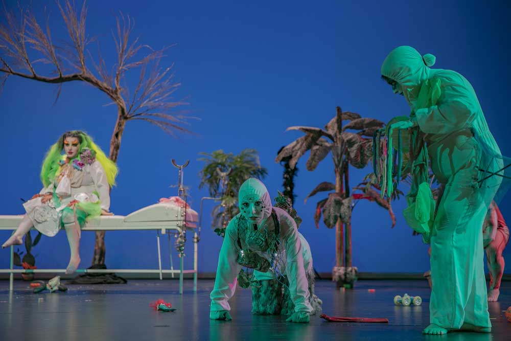 Πολύχρωμος φωτισμός νέον, φωτορυθμικά και μπουρμπουλήθρες, rave, αυστραλέζικα didgeridoo και ντραμς. Μια άμορφη, κομποστοποιημένη μάζα αποκαλύπτει σταδιακά πολυειδείς οργανισμούς που επιδίδονται σε μια έντονη, ερωτική χορογραφία. Άφυλα, ημίγυμνα ανθρωποειδή, υβριδικά αντικείμενα, απροσδιόριστης μορφής οντότητες και βακτήρια ετοιμάζονται για την απαρχή του νέου είδους. Ένα πλάσμα που γεννάει, περφόρμερ που επιδίδονται νευρικά σε παράδοξες δράσεις και δύο ποιήτριες/ποιητές, που απαγγέλλουν ερμηνείες για το νέο είδος που γεννιέται. Μία ράπερ μάς τραγουδά το μέλλον, συνθέτοντας ένα μουσικό συνονθύλευμα που αποτελεί την κορύφωση του έργου.