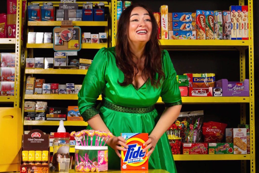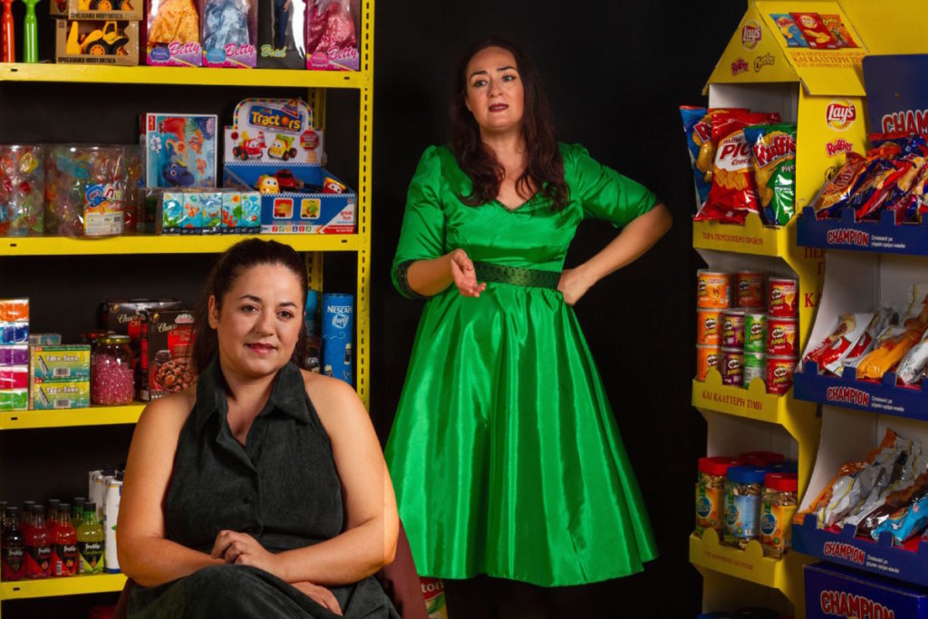 Τα ράφια γεμάτα πράγματα, με το κίτρινο χρώμα της χαράς να κυριαρχεί. Το κοστούμι της Ψιλικατζούς παρμένο, θαρρείς, από ηρωίδα παραμυθιού. Μια Χιονάτη με ένα καταπράσινο φόρεμα, σε μια συμβολική αποτύπωση της ελπίδας απ’ την οποία εμφορούνταν όταν ξεκίνησε τη ζωή της κάνοντας τόσα όνειρα για το μέλλον. Ένα παραμύθι μέσα σε ένα ψιλικατζίδικο στο οποίο κατάστρωναν σχέδια για τη ζωή τους, εκείνη και ο «πρίγκιπάς» της.