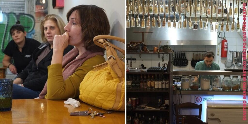 ..."Αν το θέατρο είναι ούτως ή άλλως συνέργεια –περισσότερο από κάθε άλλη τέχνη– το θέατρο που βγαίνει από τις αίθουσες και μπαίνει σε χώρους οι οποίοι καταργούν τα όρια μεταξύ θεατών και ηθοποιών πολλαπλασιάζει αυτή την εμπειρία, στέλνοντάς την στη στρατόσφαιρα… Την ηρωίδα μας, που έχει κατέβει με τη βαλίτσα της στο καφενείο να περιμένει τους τουρίστες του Airbnb που διαθέτει από πάνω, ενσαρκώνει με πηγαίο μπρίο και απολαυστικούς αυτοσχεδιασμούς η Σοφία Λιάκου. Η ευρηματική σκηνοθεσία του Τάσου Καρακύκλα της δίνει τον χώρο που χρειάζεται για να περάσει με ευκολία από την τεχνητή χαρά για το επερχόμενο δικό της ταξίδι στην ήσυχη μελαγχολία για ένα δύσκολο παρελθόν"