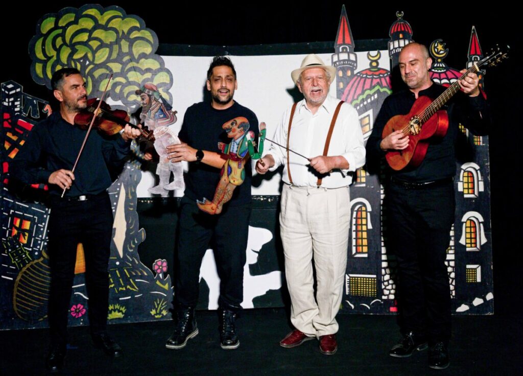 Πάνω στη σκηνή υπάρχει ο Μπερντές, όπου οι φιγούρες ζωντανεύουν και «συνομιλούν» με τον πρωταγωνιστή, δημιουργώντας μια μοναδική ατμόσφαιρα που ενώνει θέατρο, συναυλία και λαϊκή παράδοση.