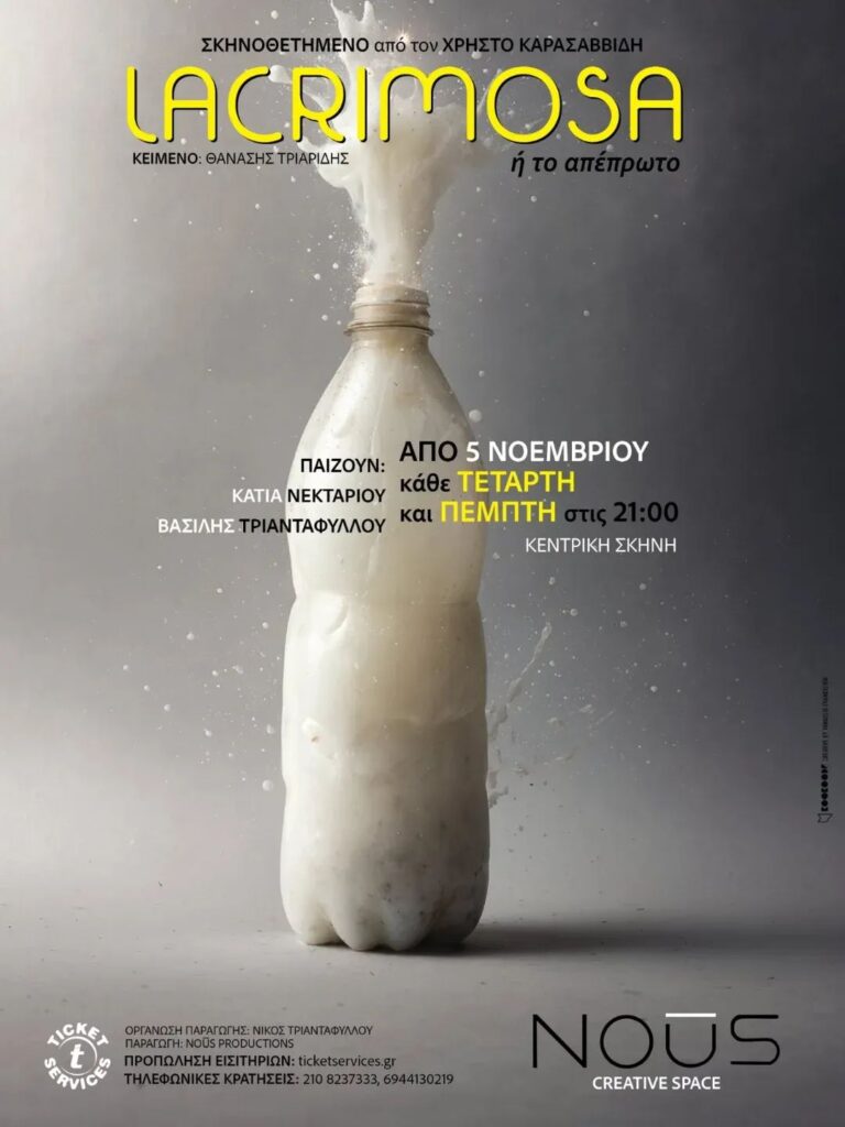 Προπώληση: https://www.ticketservices.gr/event/nous-kentriki-skini-lacrimosa-apeproto/?lang=el