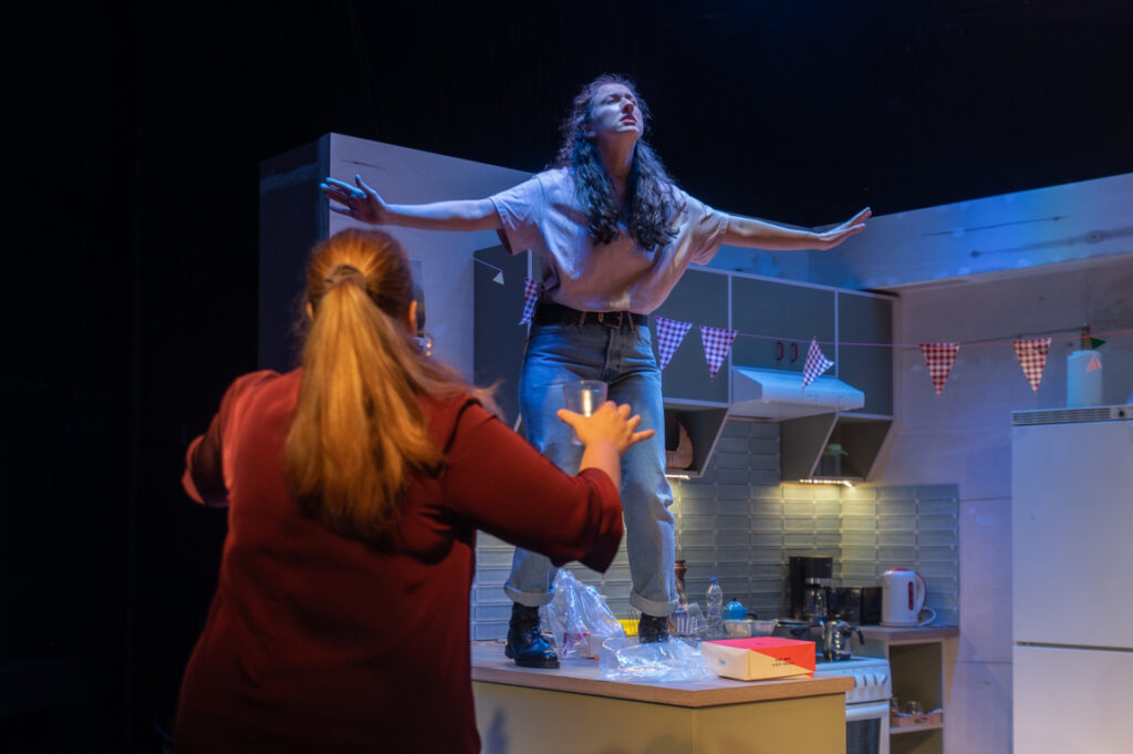 Τριάντα χρόνια μετά το πρώτο ανέβασμά του από τον Λευτέρη Βογιατζή, η Γεωργία Μαυραγάνη, μια από τις πιο δυναμικές σκηνοθέτριες της ελληνικής σκηνής, σκηνοθετεί ένα από τα αρτιότερα έργα της νεοελληνικής δραματουργίας, τη σπαρταριστή κωμωδία των Δημήτρη Κεχαΐδη και Ελένης Χαβιαρά “Με δύναμη από την Κηφισιά”.