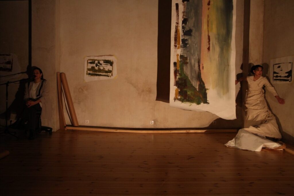 Σε ένα υπόγειο που θυμίζει τα βάθη της μνήμης, οι ερμηνευτές συνθέτουν μια ποιητική αφήγηση — ένα ταξίδι από το προσωπικό στο συλλογικό.