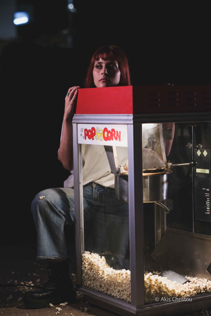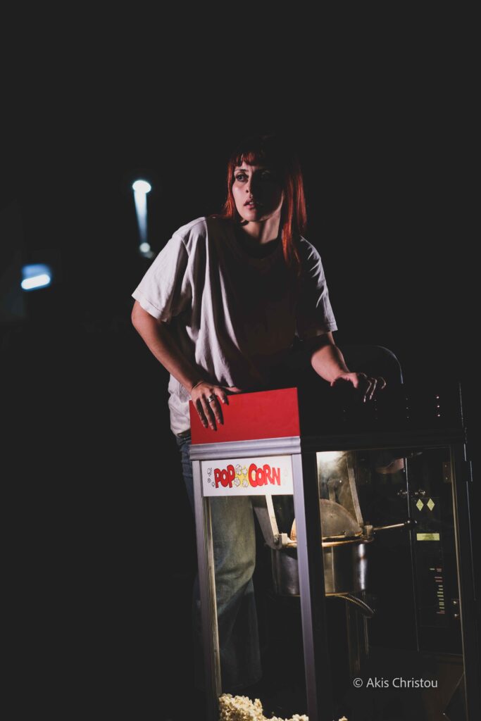 Μια σοκολάτα υγείας ξεχασμένη στο ψυγείο, ένας φασίστας θείος, μια πτήση που περιμένει, μια μηχανή ποπ κορν που συνεχώς βουίζει. Οι μικρές λεπτομέρειες μιας μεγάλης επιστροφής. Η ιστορία της κοπέλας που αναμετριέται με τον τόπο και την οικογένεια που άφησε πίσω, γίνεται καθρέφτης της σύγχρονης ελληνικής κοινωνίας – μπερδεμένης, γεμάτης αγωνία, αλλά με μια επίμονη διάθεση για «επαναστατημένη» ευτυχία.