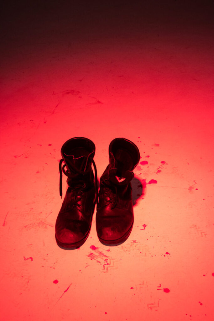 Χωρίς χρόνο, χωρίς τόπο. Ένας άντρας αποφασισμένος να νιώσει ανώτερος, φορώντας τη στρατιωτική στολή του σκορπίζει τρόμο, αίμα, πόνο και πανικό σε όλη τη βόρεια Ελλάδα. Τα δικά του βήματα βαριά και αργά, των γυναικών ανάλαφρα. Ο στόχος του να πάρει την προσοχή τους, να κερδίσει τη δική του ικανοποίηση μέσα απ’ τον πόνο τους, απ’ τα τρομαγμένα μάτια τους. Το καταφέρνει; Ναι! Πόσες φορές; Αμέτρητες! Τον έπιασαν; Ναι! Σταμάτησε να σκορπίζει τρόμο και πόνο; Όχι! Η ζωή του ένας ατελείωτος ήχος από τακούνια γυναικών, αίμα, μίσος και λαχτάρα για εξουσία. Κανένας δε μπορεί να τον σώσει, κανένας δε μπορεί να σωθεί. Φοράει τη στολή και νιώθει… Θεός!