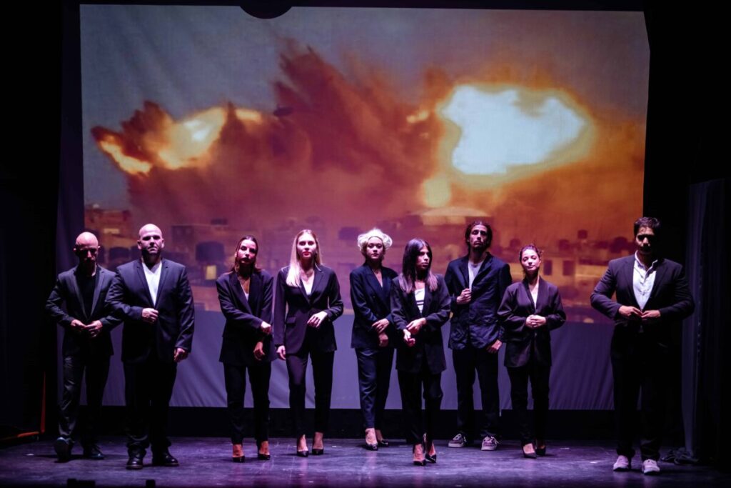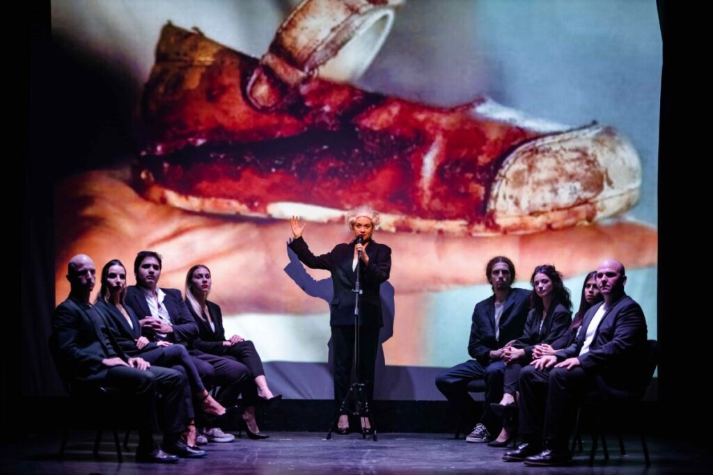 Στη σκηνή, οι µνήµες και οι φωνές των Εβραίων της Θεσσαλονίκης που εξοντώθηκαν στο Άουσβιτς διασταυρώνονται µε σύγχρονες µαρτυρίες Παλαιστινίων από τη Γάζα.  Οι οκτώ ηθοποιοί, µε τη συνοδεία ηλεκτρικής κιθάρας επί σκηνής, δηµιουργούν ένα σύµπαν όπου ο χορός της αρχαίας τραγωδίας συναντά το θέατρο-ντοκουµέντο, µετατρέποντας την αισθητική εµπειρία σε πεδίο ενεργούς αλληλεγγύης.