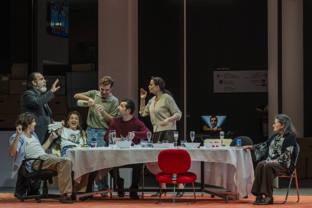 Με τον Νίκο Κουρή και την Καρυοφυλλιά Καραμπέτη στους ρόλους του Οιδίποδα και της Ιοκάστης, τον Αλέξανδρο Μυλωνά ως Κρέοντα και τη Ράνια Οικονομίδου ως Μερόπη (ένα πρόσωπο που εισάγει ο Άικ στο έργο) αλλά και τους Κώστα Νικούλι, Σωκράτη Πατσίκα, Τάκη Σακελλαρίου, Χαρά Γιώτα, Γιώργο Ζιάκα, Γιάννη Τσουμαράκη και Δανάη-Αρσενία Φιλίδου να συγκροτούν ένα τραπέζι μιας οικογενειακής και πολιτικής συνάθροισης που εκτρέπεται οριστικά. Σε μετάφραση στα ελληνικά από τον Νίκο Χατζόπουλο και συνεργάτη σκηνοθέτη για την ελληνική εκδοχή τον Πρόδρομο Τσινικόρη. Φορτισμένη με πολιτική, κοινωνική και υπαρξιακή ένταση, μια ηλεκτρισμένη εκδοχή του μύθου του Οιδίποδα που δεν πρέπει να χάσουμε.