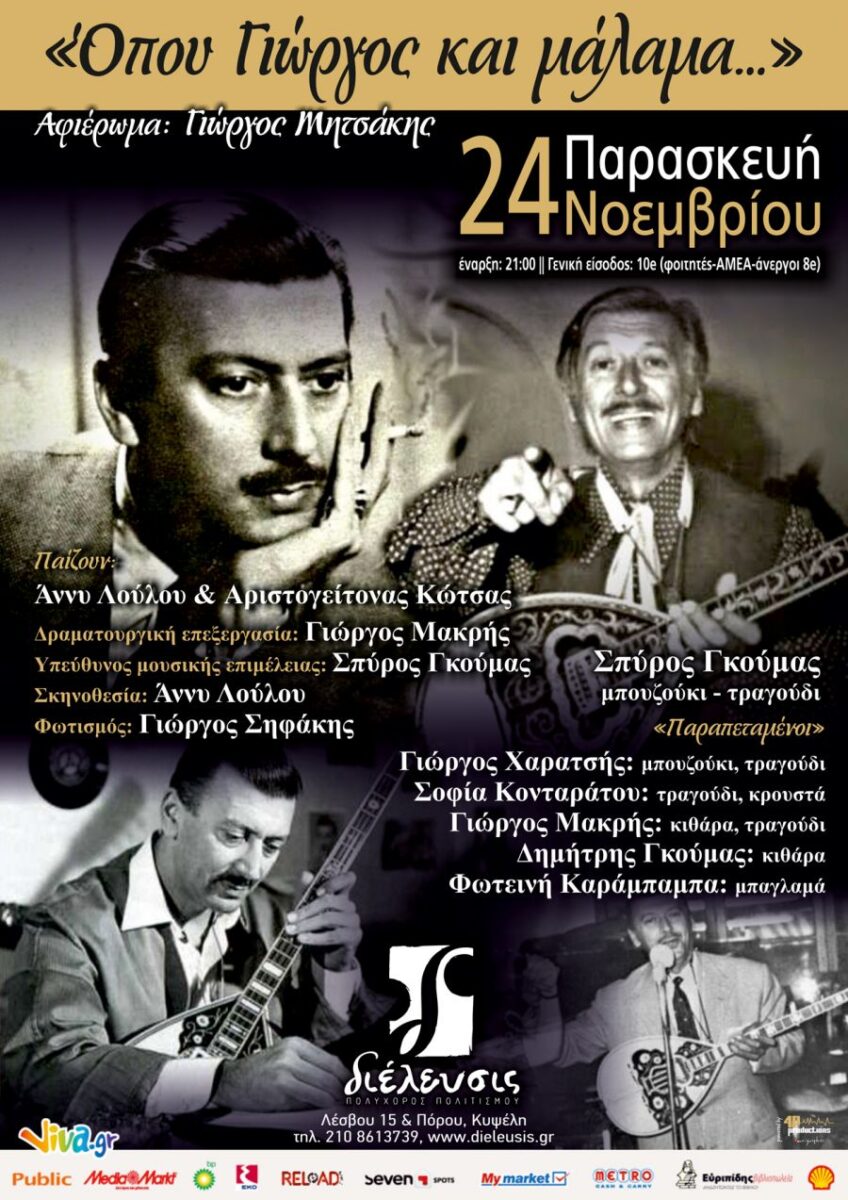 Μια θεατρική-μουσική παράσταση αφιερωμένη στον ποιητή-μουσικοσυνθέτη Γιώργο Μητσάκη