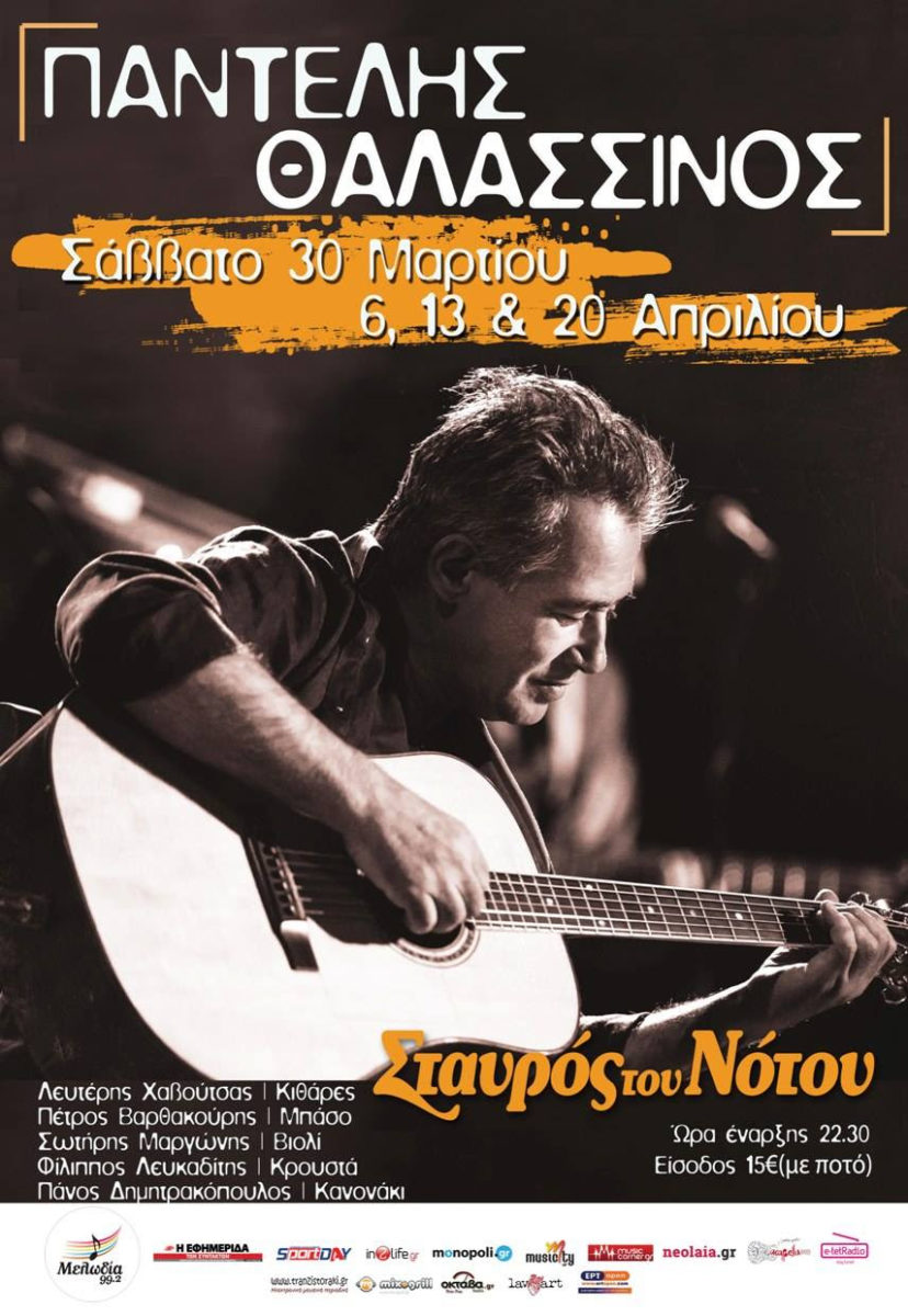 Ο Παντελής Θαλασσινός θα τραγουδήσει για τους φίλους του στην κεντρική σκηνή του Σταυρού του Νότου,  από το Σάββατο 30 Μαρτίου και τρία ακόμη Σάββατα μέχρι το Πάσχα, με τραγούδια  εφ´ όλης της ύλης.